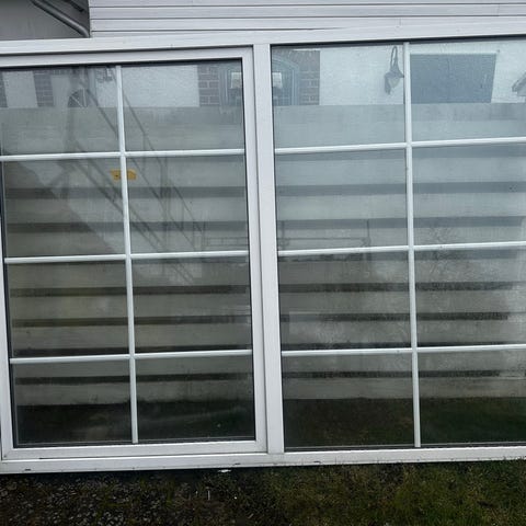 Skjutparti fönsterdörr vit med spröjs, komposit