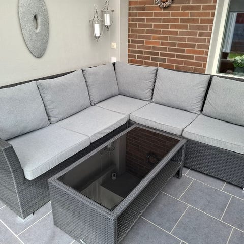 Hörngrupp utesoffa med bord gråsvart konstrotting