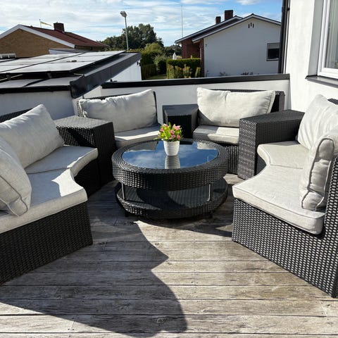 Sunfun Sandhamn Bauhaus loungeset utemöbler rotting grå dynor