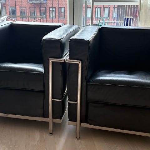Stilrena fåtöljer i svart konstläder