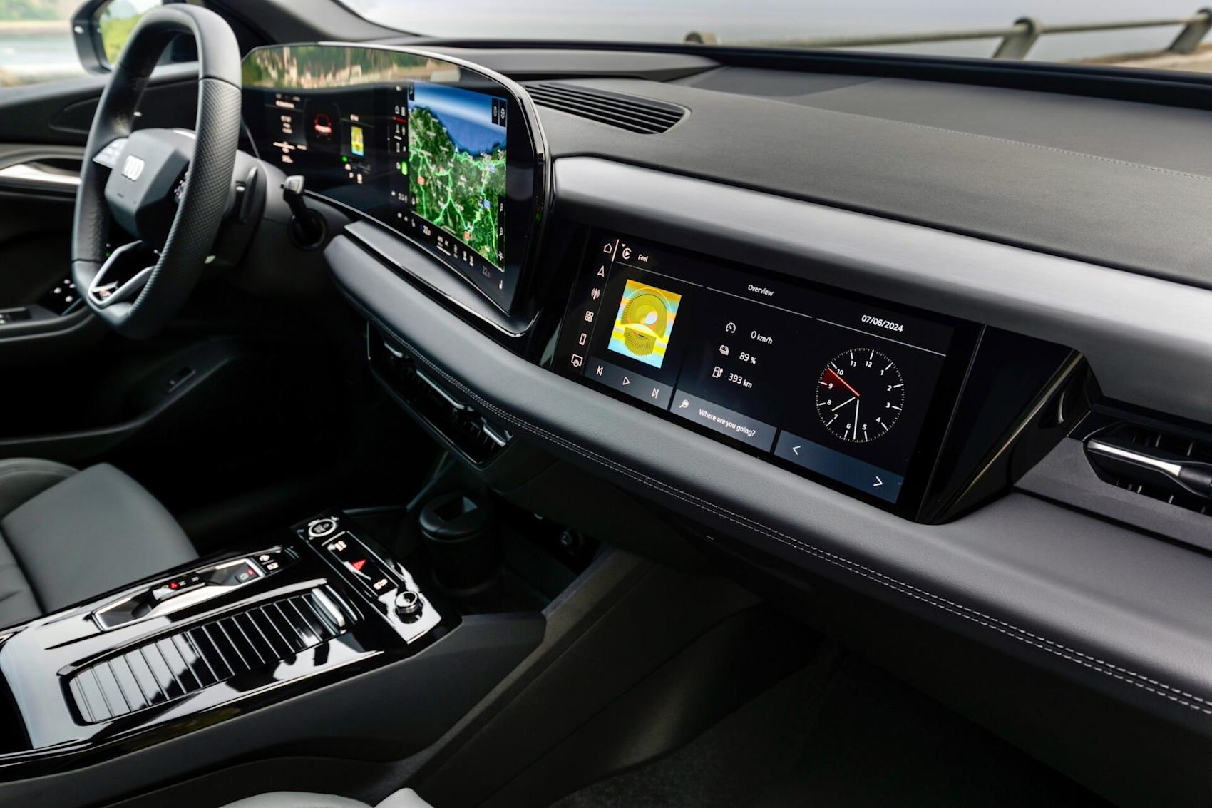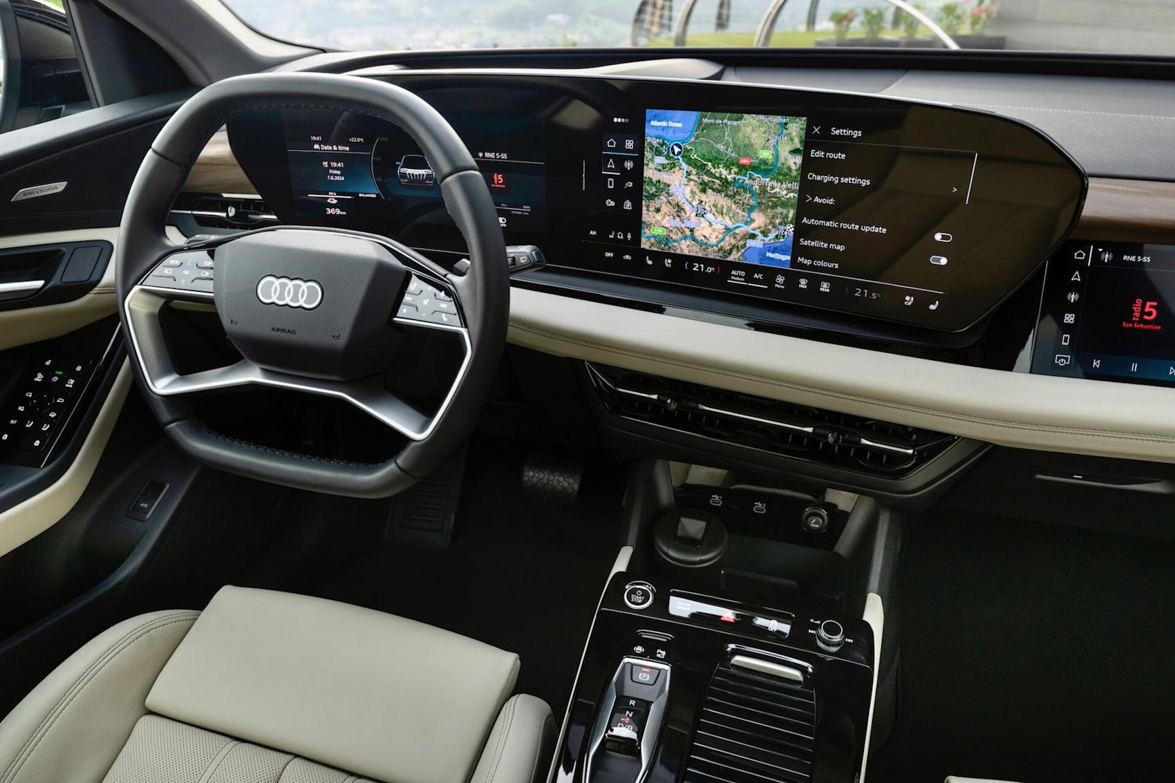 Känsligheten, på gott och ont, upphör omedelbart när jag öppnar förardörren. Om emblemet på ratten hade varit täckt hade jag inte gissat på Audi. Den genomgående skärmpanelen för infotainment och instrumentering är så okreativ som det blir. Utförandet är däremot riktigt lyckat med en kristallklar OLED-tryckskärm på 14,5 tum – mycket större än någon tidigare skärm från Audi. Menyerna och den grundläggande designen har också uppfinningsriket förnyats, till det bättre.