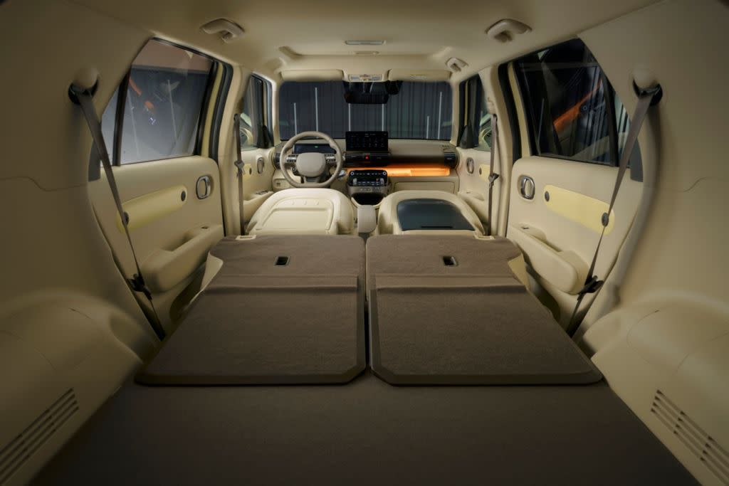 Kvalitetskänslan är blandad: hårdplasterna är många och riktigt billiga i känslan, medan säten och reglage förvånansvärt nog andas premium. Sittdynan fram är för kort, och höger knä riskerar att skava mot en vass kant i mittkonsolen. Fjädringen är mjuk, men sätena är knappast skapta för långresor. Infotainmentskärmen på 10,25 tum fungerar utmärkt, och vi gillar att interiören har gott om fysiska knappar – en utdöende lyx. Inster har också V2L (Vehicle-To-Load), vilket gör att du kan använda bilen som ett jättelikt batteri med vanliga eluttag. Perfekt för camping eller för att ladda diverse elektroniska don.