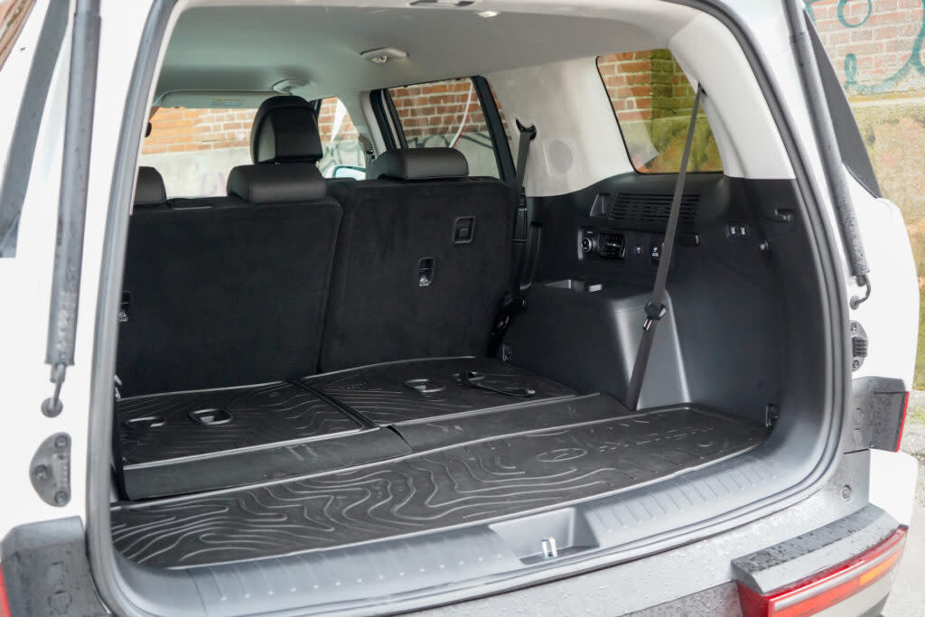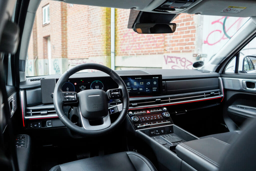 Oavsett vad man tycker om designen medför de kantiga formerna en tydlig fördel: maximalt utnyttjande av utrymme! Här finns inga sluttande taklinjer som sabbar frisyren, utan snarare en ocean av plats. Andra sätesraden är generös med både utrymme och smarta funktioner. Här finns solskydd, dubbla mugghållare, förvaringsutrymmen, USB-C-portar och justerbara säten med värme. Tredje raden får också mugghållare och USB-C, men inte samma benutrymme. Precis som vanligt är tredje raden reserverad för de yngsta i familjen. Det finns Isofix-fästen, och platsen räcker gott för barn upp till 1,50 meter.