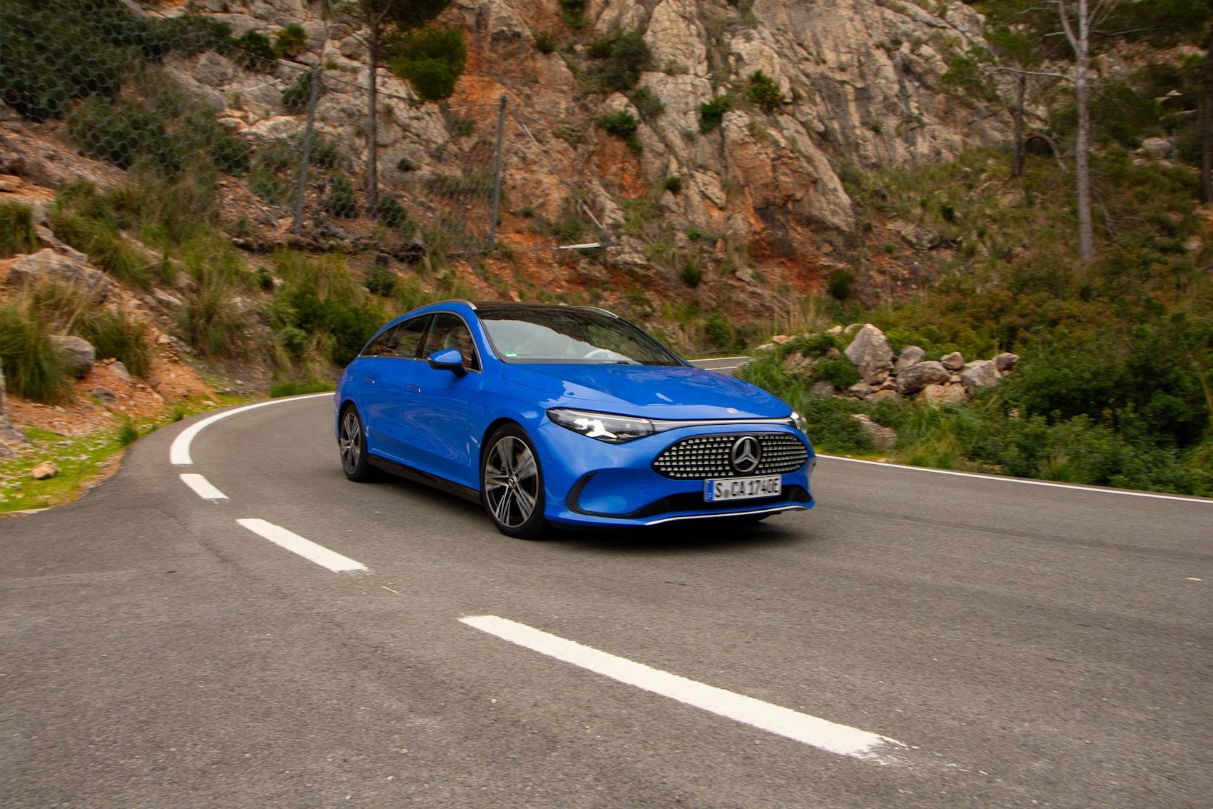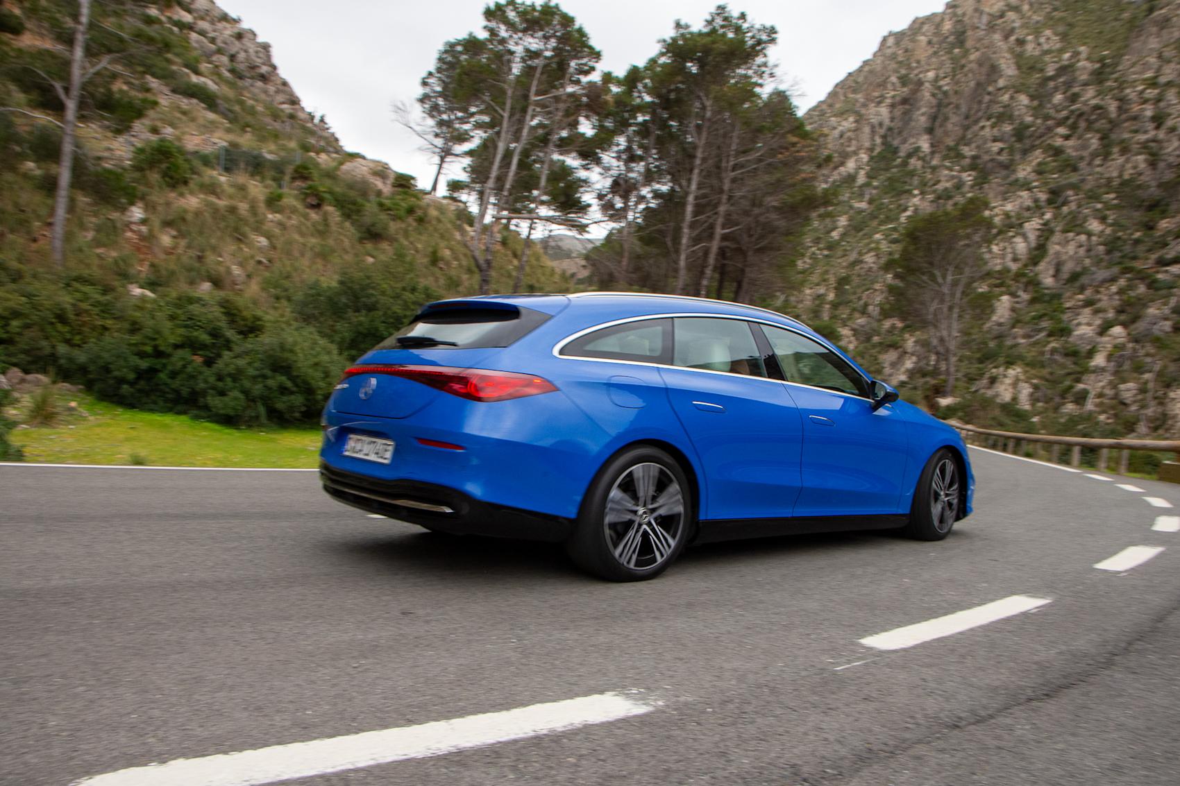 De elektriska hästarna i CLA Shooting Brake kan som nämnts också dra ett lass på 1,8 ton, men denna dag får elmotorerna på 260 kW, eller 354 hk, fria tyglar. Vridmomentet på 515 Nm och en tvåstegad automatlåda ska skicka iväg bilen från 0 till 100 km/h på 5,0 sekunder blankt, något som absolut känns realistiskt.