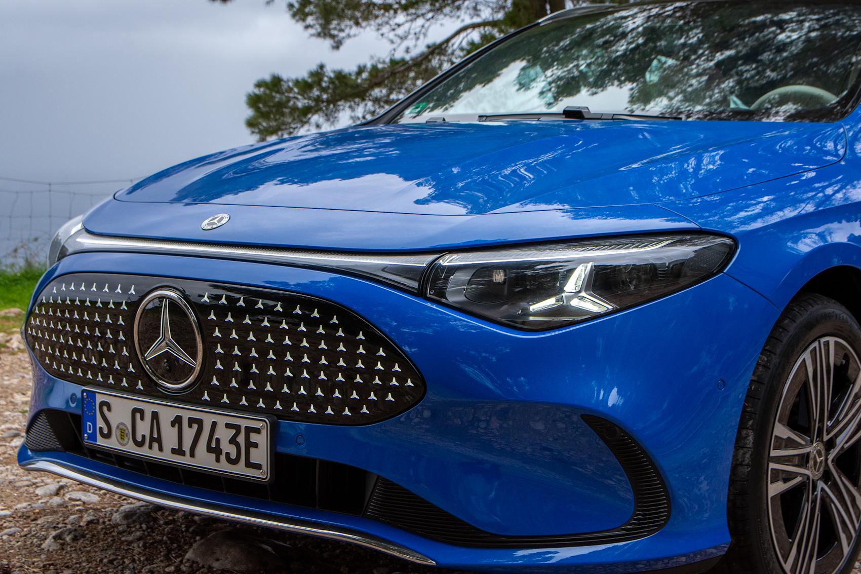 Kanske är det den nya färgen ”Sheer Blue”, som blir ungefär ”Knallblå” på svenska, i kombination med den ljusa interiören. Eller så är det helt enkelt att Mercedes CLA klär i de nya Shooting Brake-linjerna betydligt bättre än sedanen. De två bilarna är identiska från den stjärnprydda grillen till B-stolpen, alltså skarven mellan dörrarna.