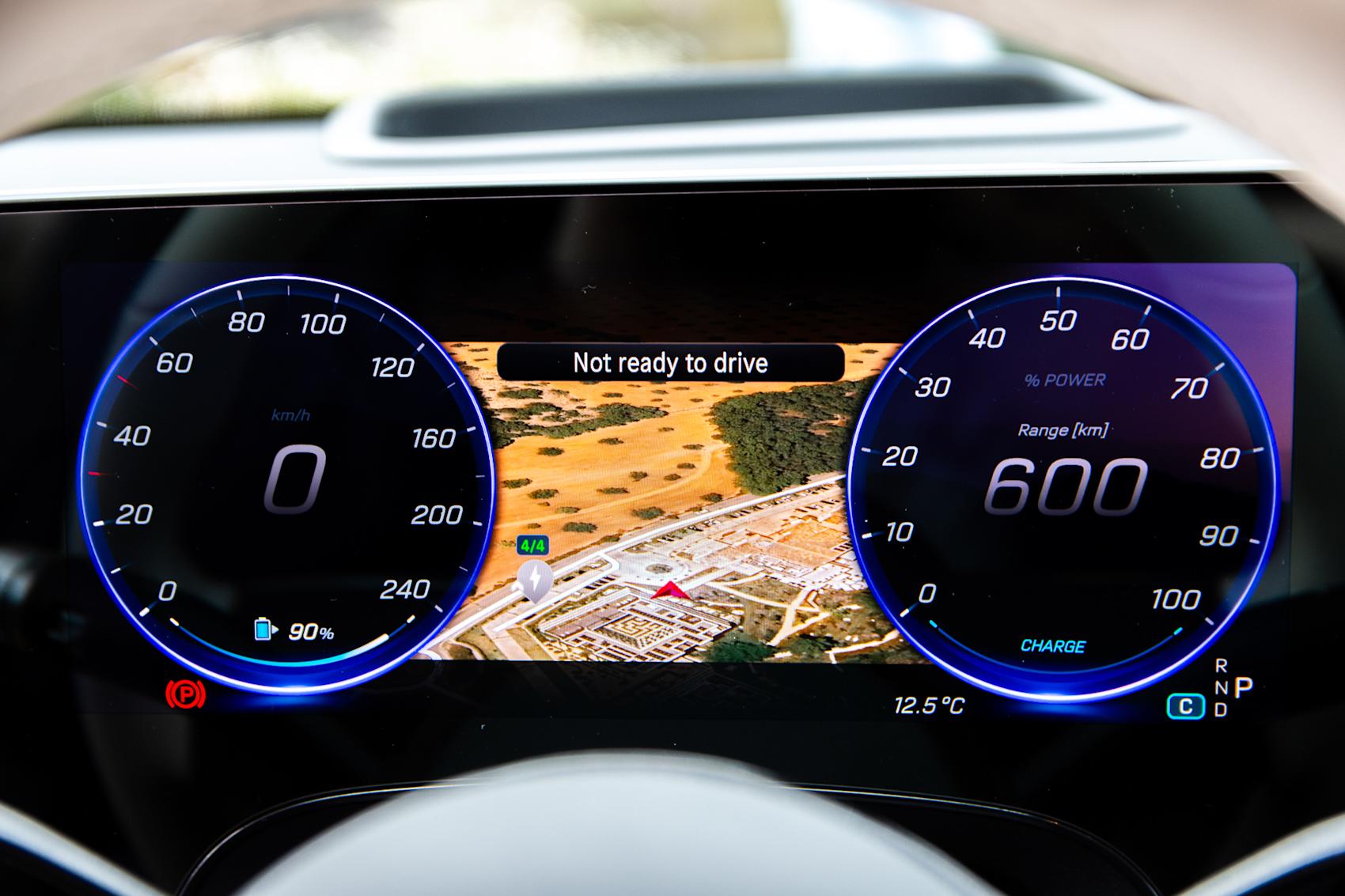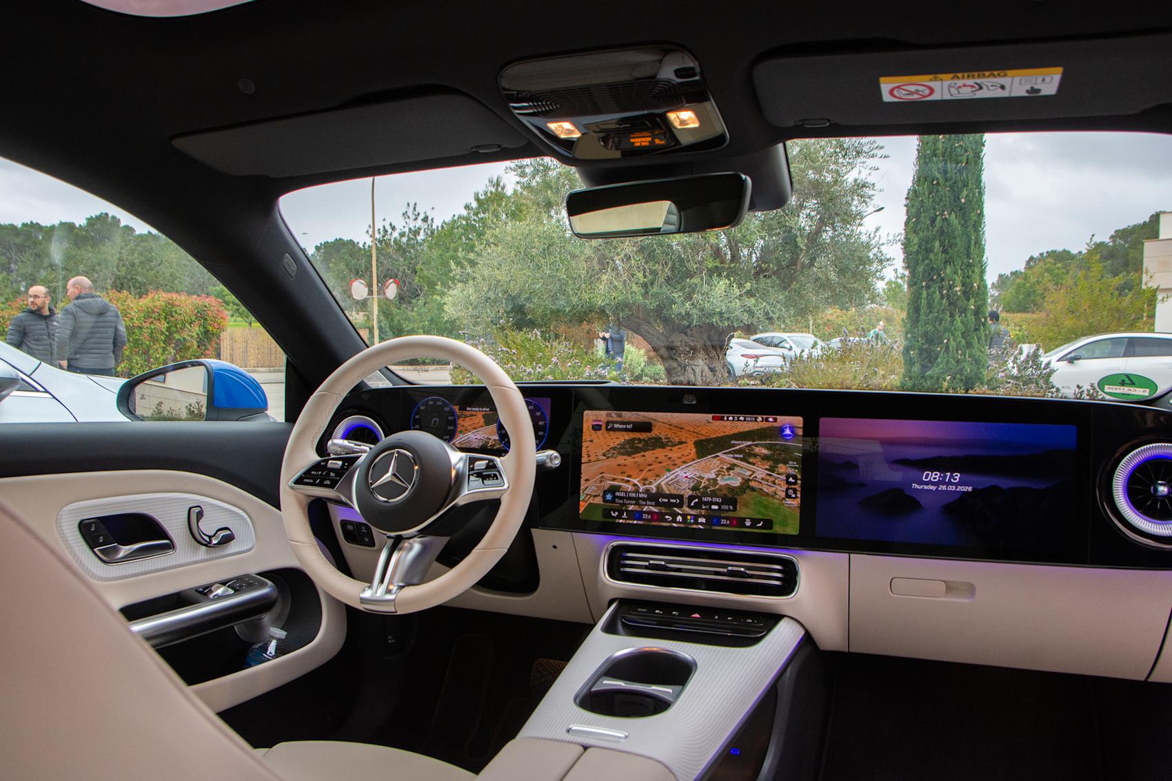 Instrumentbrädan är en digital surfplatta som sträcker sig från vägg till vägg, men om du vill ha det lika snyggt som på bilderna är skärmen på passagerarsidan extrautrustning.