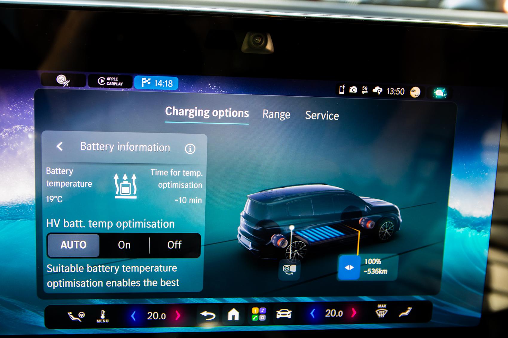 Resultatet är en maximal laddeffekt på 320 kW, ett kvantsprång över föregångaren EQB som slog i takräcket vid 100 kW. Under ideala förhållanden ska räckvidden kunna ökas med 260 km på 10 minuter. Och hittar du en laddstation med tillräckligt med kraft ska det ta cirka 22 minuter från 10 till 80 procent.