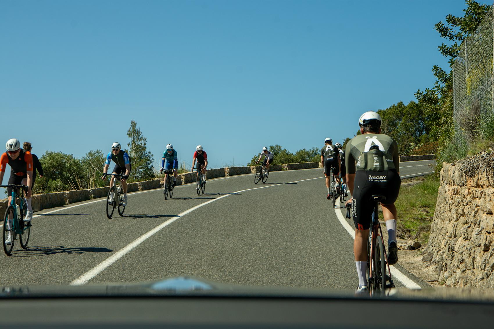 Ute på vägen producerar fullkomligt dräller det av nämnda färgglada cyklister, och några få modiga själar kommer upp i så hög fart i nedförsbackarna att de faktiskt kör om oss.