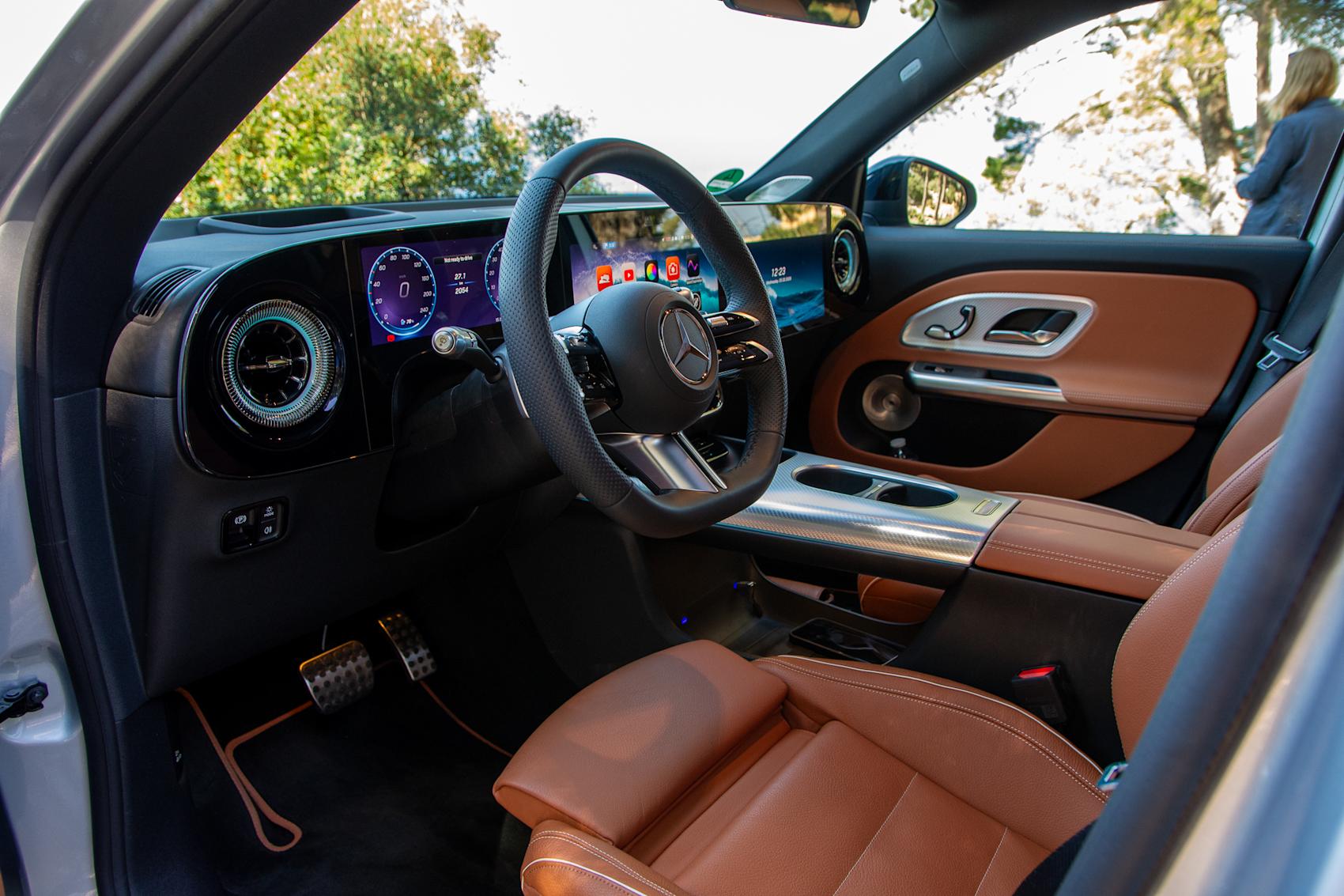 Interiören i GLB ger känslan av att ingenjörerna startade med sätena och sedan byggde resten av bilen runt resultatet. Det stora panoramataket släpper in mängder av naturligt ljus, och det finns gott om plats för vuxna i baksätet även om förarsätet är inställt för en rejäl karl.