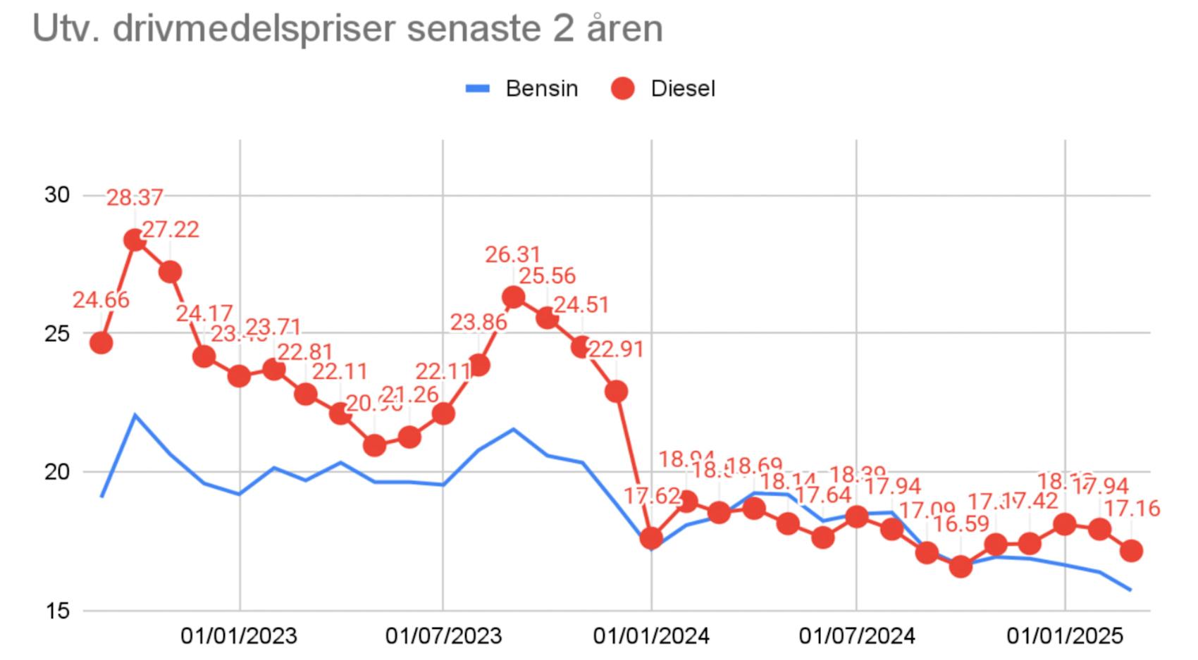 En del av svaret hittar vi i prisutvecklingen för diesel de senaste åren. I mitten av 2022 kostade en liter diesel 28,37 kr! Idag ligger priset på strax över 17 kr – en sänkning med över 11 kr per liter. För samma pengar som en liter diesel kostade för två år sedan, kan du idag köpa både en liter diesel och dessutom lägga till sju deciliter mellanmjölk (japp, den kostar 14,50 kr/l). Under samma period har elpriserna ökat med 40 procent i vissa delar av landet, och medianpriset på en begagnad elbil är fortfarande 200 000 kronor högre än för en dieselbil. Därför är det kanske inte så förvånande att många just nu ser diesel- och bensinbilar som mer prisvärda alternativ – men är det hållbart i längden? Som en marknadsanalytiker från en av storbankerna uttryckte det för något år sen: