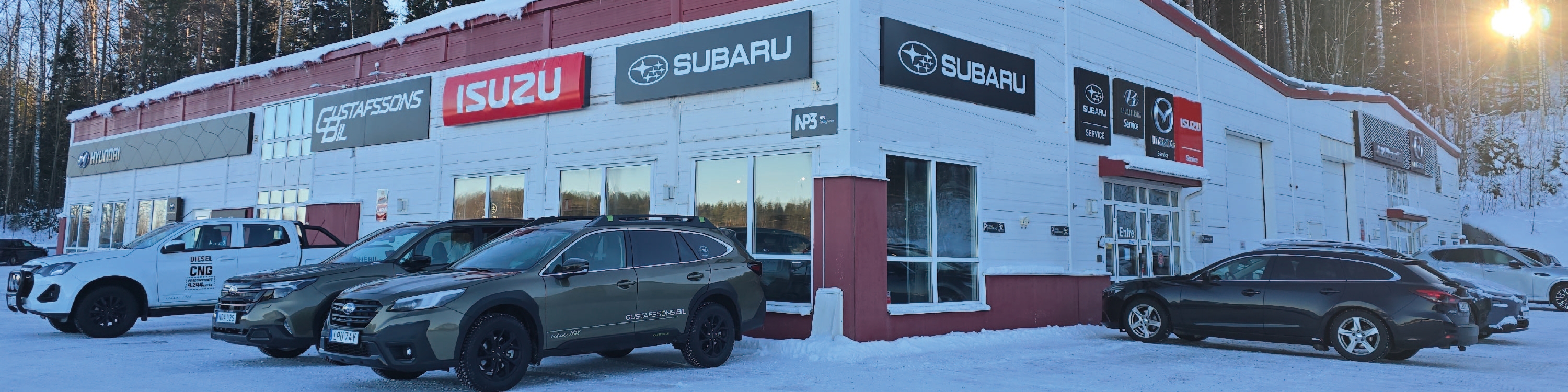 Välkommen in till vår bilhall på Tjärnvägen 40 i Skellefteå. Här får du i lugn och ro titta närmare på modeller från Subaru, Isuzu, Mazda och Suzuki. NYHET! Nu har även våra begagnade bilar flyttat in i bilhallen.