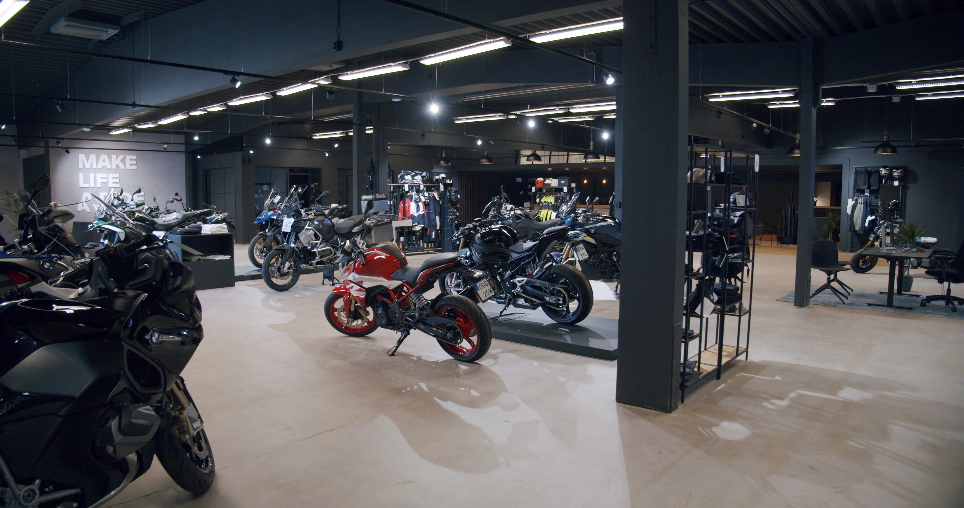 Vi är en auktoriserad BMW-återförsäljare med egen verkstad för service och reparationer. I butiken har vi ett stort urval av nya och begagnade motorcyklar i form av både touring, offroad, sport, custom m.m.