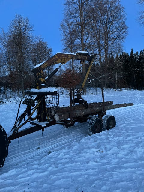 29.12.25Vretens Skogsvagn Vägsladd Bala Agris Vedmaskin/Kärror/Vagn