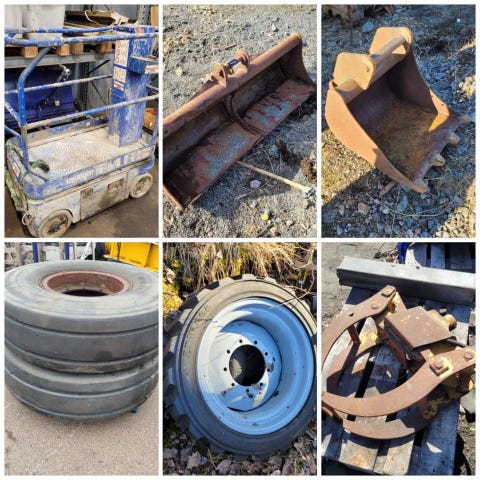 2 timPelarlift, Skurmaskin, Grip, Skopa, Däck, och mera
