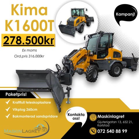 Teleskoplastare Kima K1600T, skopa & gafflar. I lager!2026348 125 krKarlstad ∙ Maskinlagret i VärmlandFöretag1 dagAdd to favourites.