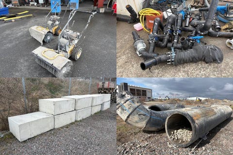 5 dagarSopmaskiner, Ventiler till PE-rör, Betongblock, PE rör