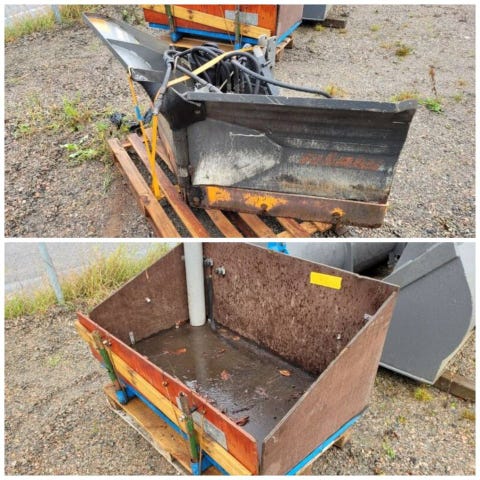 Containrar, vertikalskärare, snöslunga, dieseltank, med mera