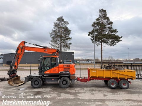 3 dagarGrävmaskin Doosan DX165W-5 med vagn och redsk