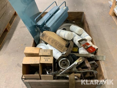 Pall med diverse reservdelar och tillbehör