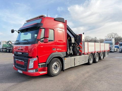 13 timVolvo FM 460 Tridem Kranbil Flak Palfinger Jibb Låga Mil