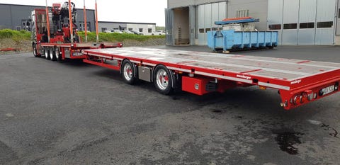 46 min12m Maskinsläp 38t 4-axlat, p-light hydr. ramper , Omg. Lev.