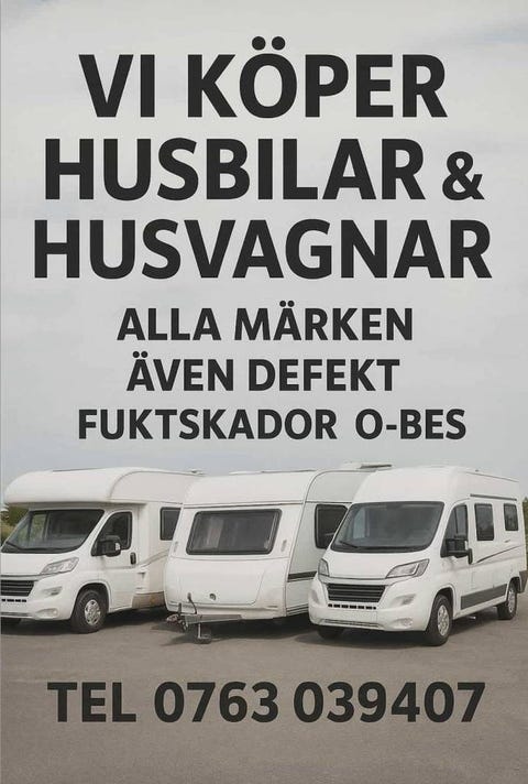 25.12.25Köper in Alla modeller av Husbilar & Husvagnar även defekta