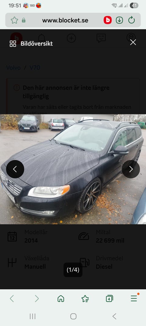 Volvo V70D4 Manuell2014 ∙ 22 700 mil ∙ Diesel ∙ Manuell105 000 krKallingePrivat2 timAdd to favourites.