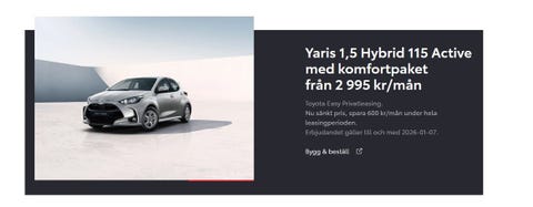 Är du på jakt efter en Toyota lokalt från Huddinge? Då har du kommit rätt! Det finns 162 annons(er) på Blocket med en Toyota till salu till fantastiska priser. Oavsett om du gillar fart, komfort eller bränsleekonomi kan du hitta den perfekta Toyota för dig på Blocket. Ta en titt på vårt breda utbud av Toyota-bilar i området: Huddinge och hitta drömbilen nära dig. Hitta det du drömmer om på Blocket!