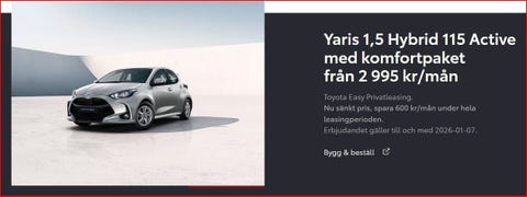 6 dagarÄr du redo att köra iväg i en Toyota Yaris-Serie? Det finns just nu 38 Toyota Yaris-Serie bilar till salu på Blocket. Den här biltypen är ett populärt val för dig som vill kombinera körglädje, komfort och smart funktionalitet. Oavsett om du prioriterar vardagskörning, sportigare känsla eller extra bekvämlighet finns det utföranden som passar olika behov och preferenser.