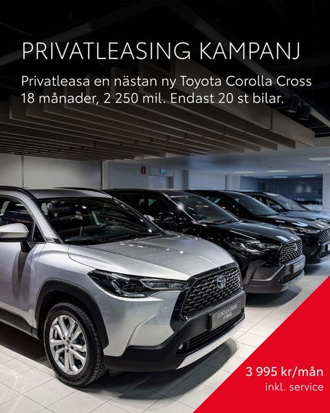 3 dagarÄr du redo att köra iväg i en Toyota Corolla Cross? Det finns just nu 8 Toyota Corolla Cross bilar till salu på Blocket. Den här biltypen är ett populärt val för dig som vill kombinera körglädje, komfort och smart funktionalitet. Oavsett om du prioriterar vardagskörning, sportigare känsla eller extra bekvämlighet finns det utföranden som passar olika behov och preferenser.