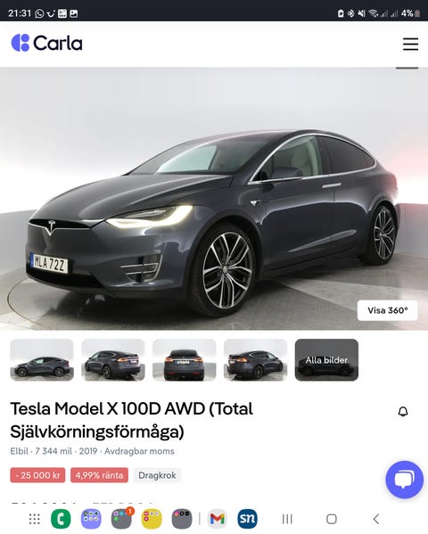 4 dagarÄr du redo att köra iväg i en Tesla Model X? Det finns just nu 88 Tesla Model X bilar till salu på Blocket. Den här biltypen är ett populärt val för dig som vill kombinera körglädje, komfort och smart funktionalitet. Oavsett om du prioriterar vardagskörning, sportigare känsla eller extra bekvämlighet finns det utföranden som passar olika behov och preferenser.