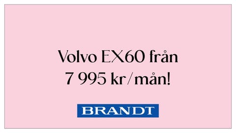1 dagÄr du redo att köra iväg i en Volvo EX60? Det finns just nu 82 Volvo EX60 bilar till salu på Blocket. Den här biltypen är ett populärt val för dig som vill kombinera körglädje, komfort och smart funktionalitet. Oavsett om du prioriterar vardagskörning, sportigare känsla eller extra bekvämlighet finns det utföranden som passar olika behov och preferenser.