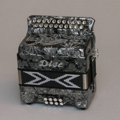 Dise "Woody" finns i standardutförandet med silverdetaljer eller denna ännu exklusivare guldversion och båda har 3 diskantregister så man kan välja 1-körigt, 2-körigt violinläge eller 3-körig musette!