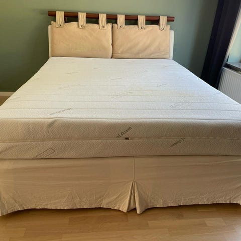 Kontinentalsäng med dubbel pocket system inklusive bäddmadrass, ben och gavel.