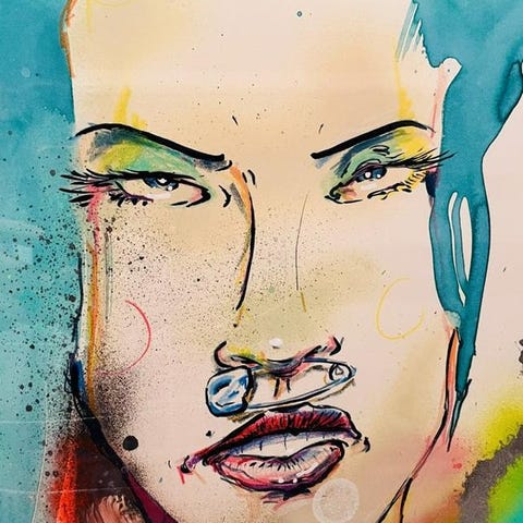 Blandteknik, Stadsbild med industrier, monogramsignerad POF, daterad -57. Dedikation.