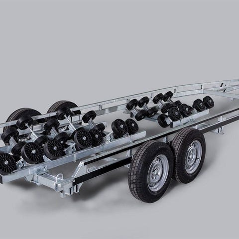 Genomgående stark men lättviktsram och självjusterande multirulle stödsystem gör vår MR-serien ett perfekt val för standardskrov samt speciellt formade skrovar. Utmärkande egenskaper är flyttbar axel, komplett set LED lampor, vår signummärkta baklampshållare, säkerhetskedja och 32+4 kraftiga sidorullar. Dessa och mycket mer gör trailer till en verkligen professionell båttrailer.