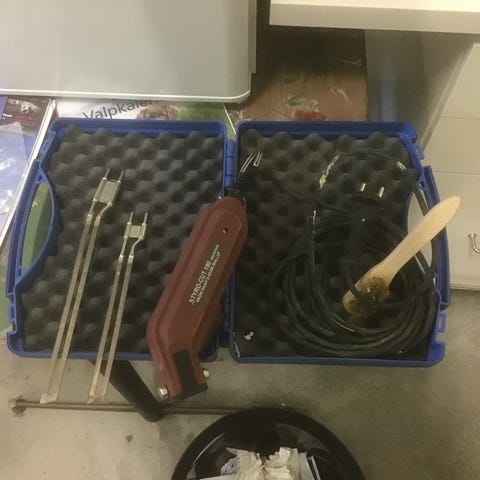 Skärmaskin med varm tråd för att skära frigolit och liknande isoleringsmaterial.