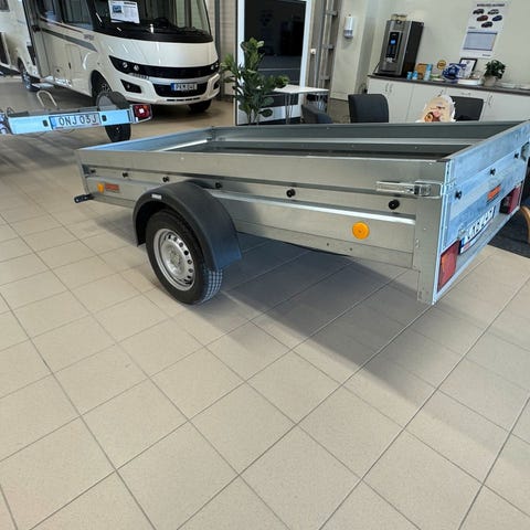 Tiki CP 350-R flakmått 350 x 150 cm totalvikt 750 kg, Justerbart stödhjul med fäste, Laminerat vattentätt plywoodgolv 12mm, Avtagbar fram- och bakläm, Lämmen med helsvetsad ram, Klivbara skärmar i metall, Kulhandske Winterhoff (Tyskland), Balanserade hjul med M+S-däck, 8 bindöglor (på insidan) och 4 bindkrokar (på utsidan), Besök ring eller maila oss för mer information, Räntefri finansiering kan ordnas, Pris 29 900:- inkl moms 23 920:- ex moms
