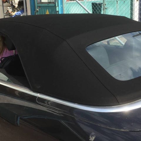 Svart tyg, originalmaterial (vi har fler färger o material på lager!) Glasrutan i suffletten är fastsatt med Robbins unika Permalok system, vilket ger dej livstids garanti mot att glasrutan släpper!