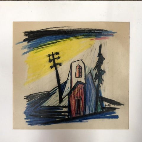 Pastell, Husmotiv, "Vinterkväll". Oidentfierad konstnär, otydligt signerad , Sundin(?)