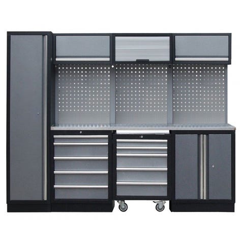 Vi har satt ihop en uppsättning moduler för den lilla verkstaden med bra förvaringsutrymme.