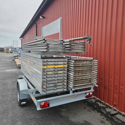 Vi säljer byggnadsställning i Aluminium från Altrad på ett specialtillverkat bilsläp från Nordic Cartrailer.