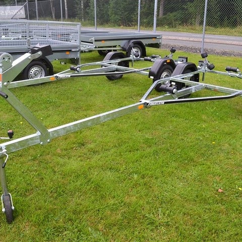 Stabil obromsad båttrailer byggd i galvaniserat stål.