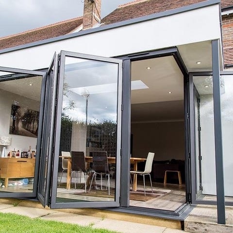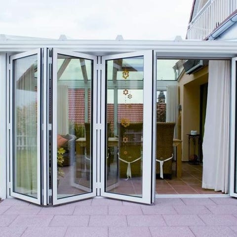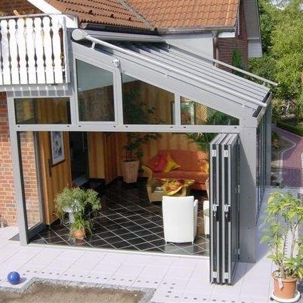 Vi erbjuder vinterisolerade vikdörrar i aluminium som viks ihop på utsidan för att inte ta plats på insidan. Helglasade med säkerhetsglas (om det behövs) på båda sidor, för maximalt ljusinsläpp.
