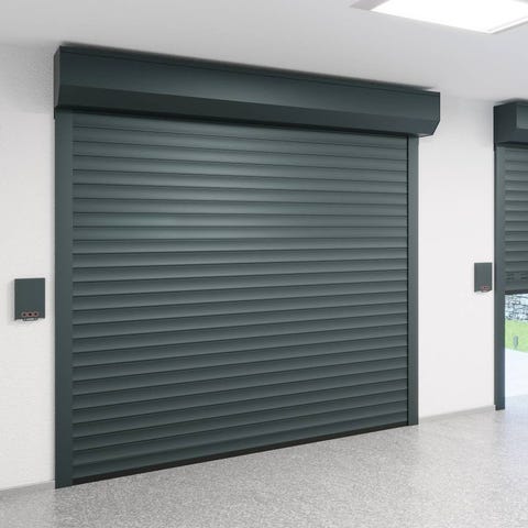 Våra rullportar tar minimalt utrymme under taket och kan också monteras ute.