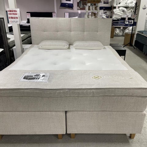 Säng med fast komfort som går att beställa i många olika tyger.
