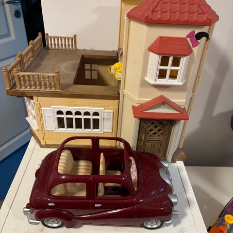 Stora och lilla huset, 2 butiker. Massor av möbler, inredning, mat och prylar. 14 figurer och kläder.