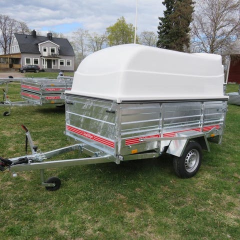 Kampanj! på -2024 Års modell, Släpkärra med avtagbar Plastkåpa (Jaxal) Obromsat Svetsat EU Släp, Inkl Stödhjul, 3-Års Garanti, Brenderup FS 1425, Tot.vikt 650/750kg, Lastvikt 475/575kg, Innermått L250xB138xH126cm Kampanj! Pris =22900:- , Pris inkl. moms.