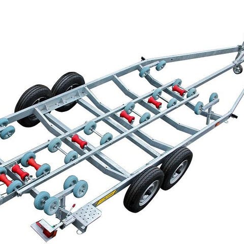 TK:s kvalitetstrailer för båtupptagning 30km/h. Mycket stabil och säker boggi vagn både vid körning och upptagning. Klarar båtar upp till ca 730 cm med en vikt på 2000 kg. Levereras med komplett med stödhjul, fast belysning och LGF skylt.