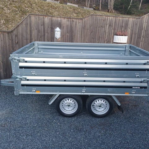 Denna vagn, Brenderup 4310STB1990 är en dubbelaxlad vagn med fällbara lämmar runtom och en lastvikt på hela 1595 kg.